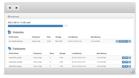 Profitez de jusqu'à 1 Go de sauvegardes automatiques quotidiennes pour tous vos fichiers de site web, bases de données MySQL et courriels. Pas besoin de lever le petit doigt!